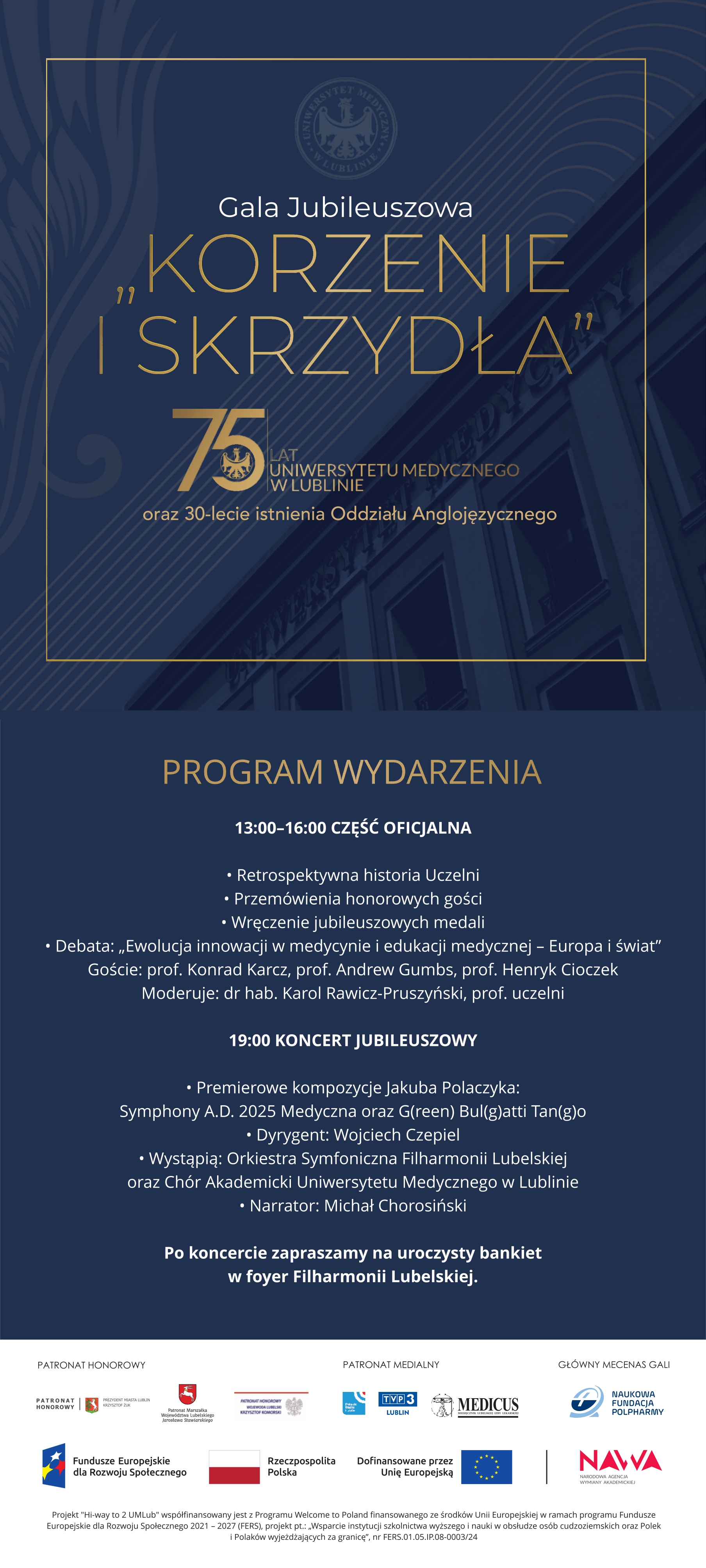 O godz. 19:00 w Filharmonii im. Henryka Wieniawskiego w Lublinie odbędzie się Koncert Jubileuszowy. Wydarzenie to połączy artystyczną doskonałość z refleksją nad tradycją i przyszłością naszej Alma Mater.