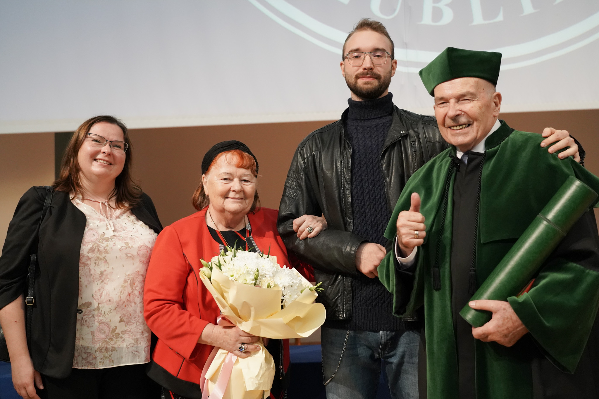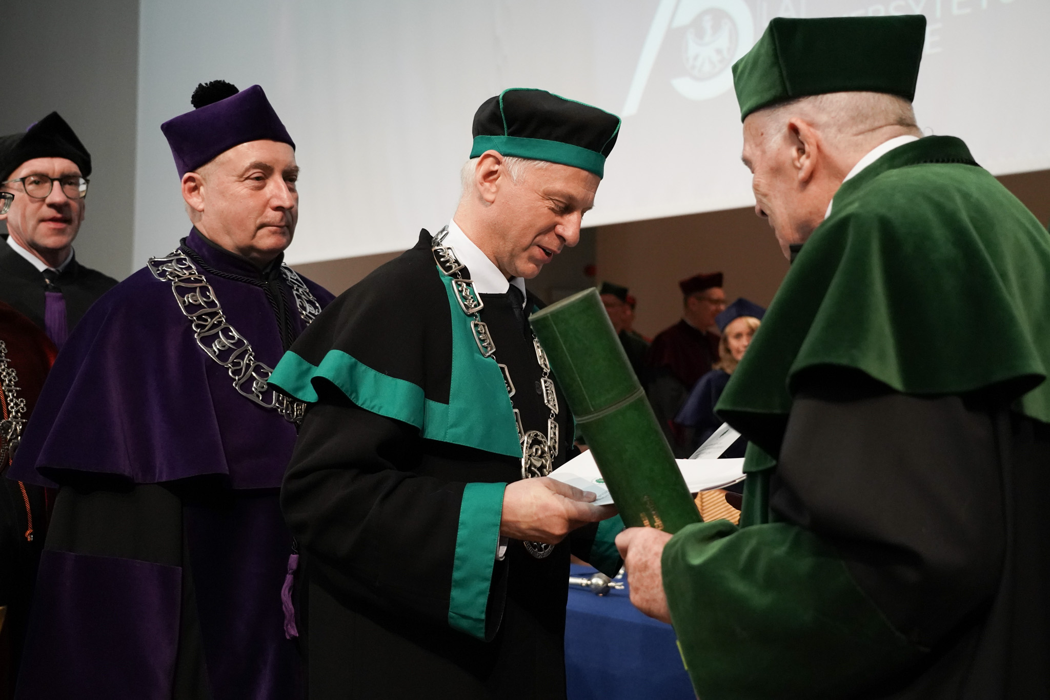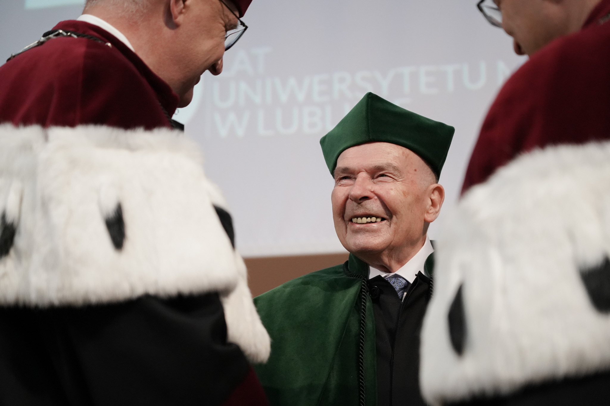 Po odśpiewaniu hymnu Gaude Mater Polonia, nowy doktor honoris causa w poruszającym wykładzie opowiadał o swojej naukowej drodze, współpracach i ludziach, dzięki którym nauka stała się jego pasją.