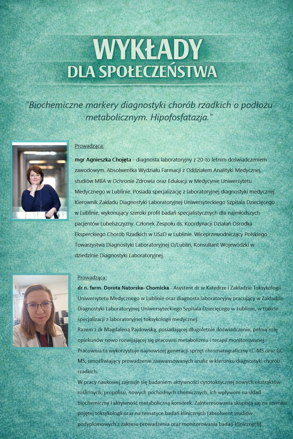 Wykład: "Biochemiczne markery diagnostyki chorób rzadkich o podłożu metabolicznym. Hipofosfatazja"