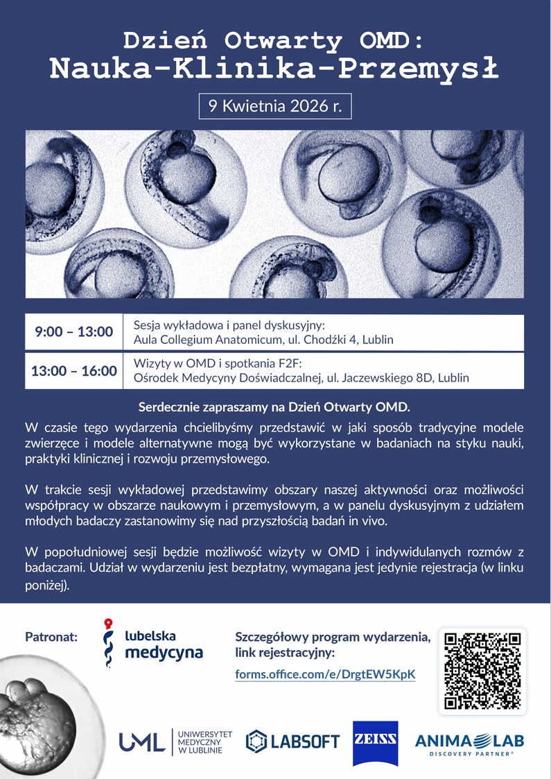 Wydarzenie zaplanowano na czwartek, 9 kwietnia br., w Auli Collegium Anatomicum Uniwersytetu Medycznego w Lublinie oraz w Ośrodku Medycyny Doświadczalnej (OMD).