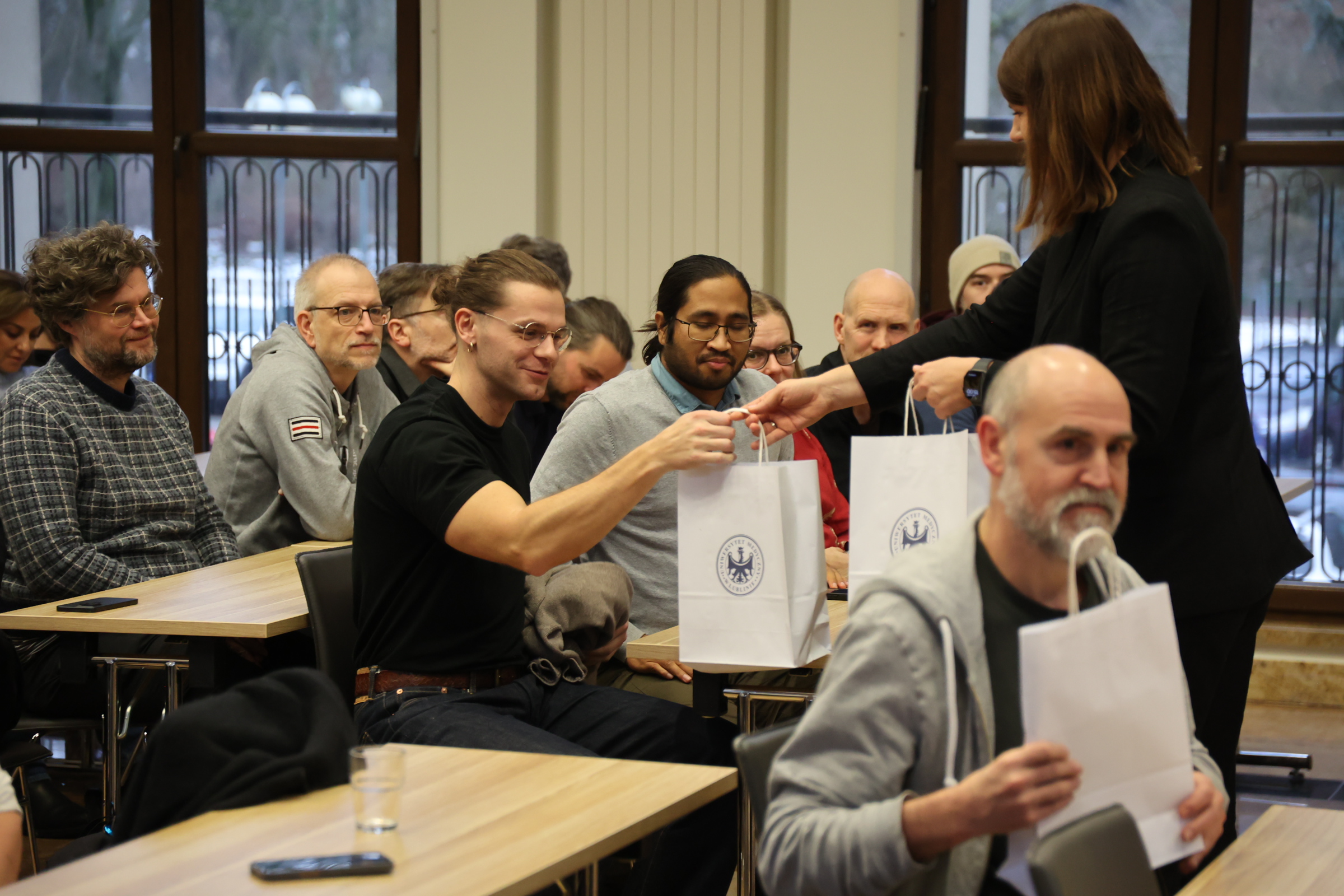 Następnie szwedzcy specjaliści zapoznali się ze strukturą naszego Uniwersytetu oraz wysłuchali dwóch prelekcji: dr Wiktor Wójtowicz, zastępca lekarza kierującego Klinicznym Oddziałem Ratunkowym Uniwersyteckiego Szpitala Klinicznego Nr 4 podzielił się doświadczeniami związanymi z leczeniem pacjentów z Ukrainy na oddziale traumatologii, a ratownik medyczny Krzysztof Kornet, były medyk sił specjalnych, mówił m.in. o wyzwaniach związanych z sytuacją zbrojnego konfliktu przygranicznego i aktywnościach dotyczących zapewnienia pomocy humanitarnej w trakcie jego trwania.