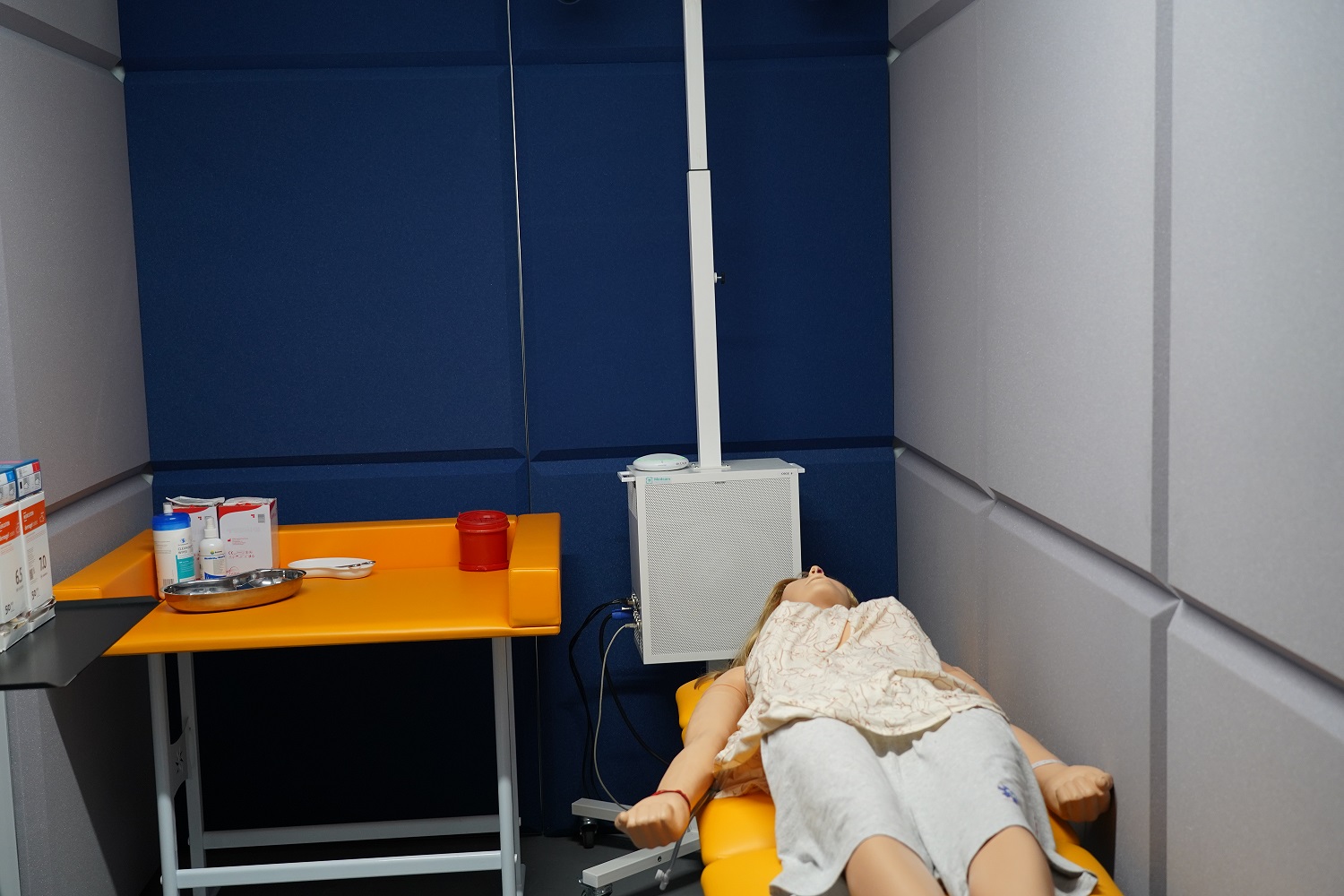 Egzamin został przeprowadzony z wykorzystaniem fantomów oraz stanowisk symulacyjnych odzwierciedlających realne sytuacje kliniczne. Obejmował on krótkie, zadaniowe scenariusze, podczas których studenci byli obserwowani przez egzaminatorów za pośrednictwem systemu kamer. Każdemu stanowisku egzaminacyjnemu przypisano odpowiadający mu boks komisji, co umożliwiało sprawną i jednoczesną ocenę przebiegu poszczególnych zadań. Dodatkowo zapewniono stałe połączenie głosowe z koordynatorem egzaminu, który czuwał nad organizacją pracy, monitorował czas oraz nadawał tempo przechodzenia między kolejnymi stacjami, ponieważ studenci musieli sprawnie rotować między stanowiskami zgodnie z harmonogramem.
