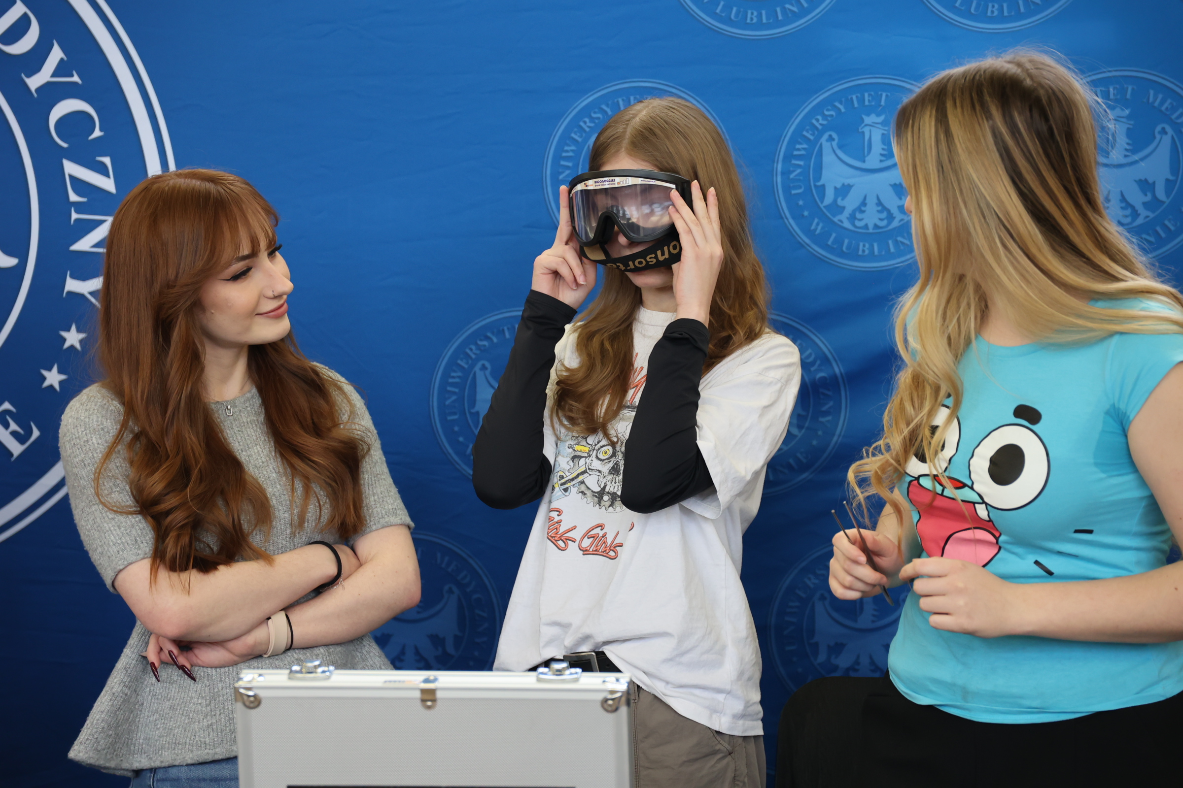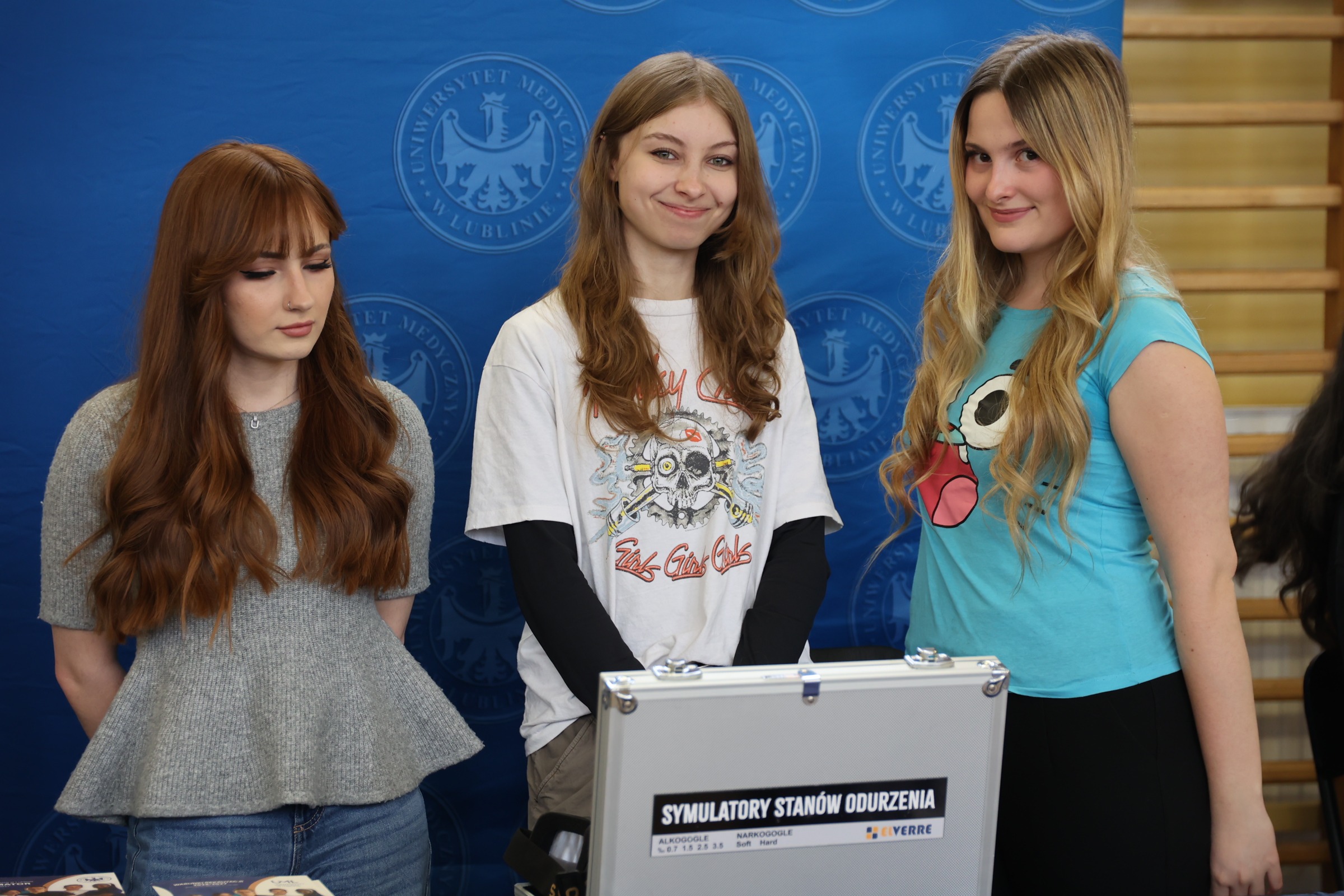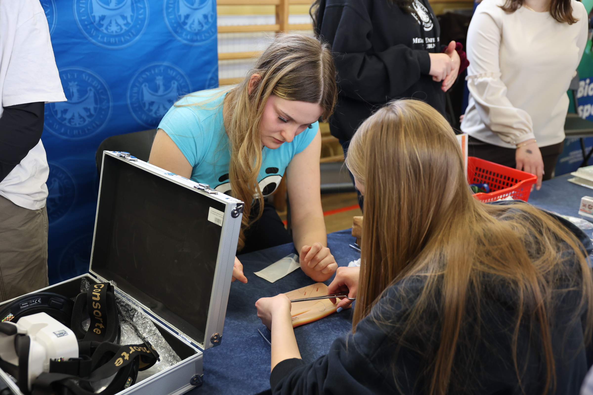 Podczas spotkania przy stoisku UMLUB licealiści z VI LO przy ul. Mickiewicza w Lublinie mogli sprawdzić, jak poradzą sobie z zestawem do szycia chirurgicznego, przetestować symulatory stanów odurzenia (alkogogle i narkogogle) oraz zobaczyć pokazy chemiczne.