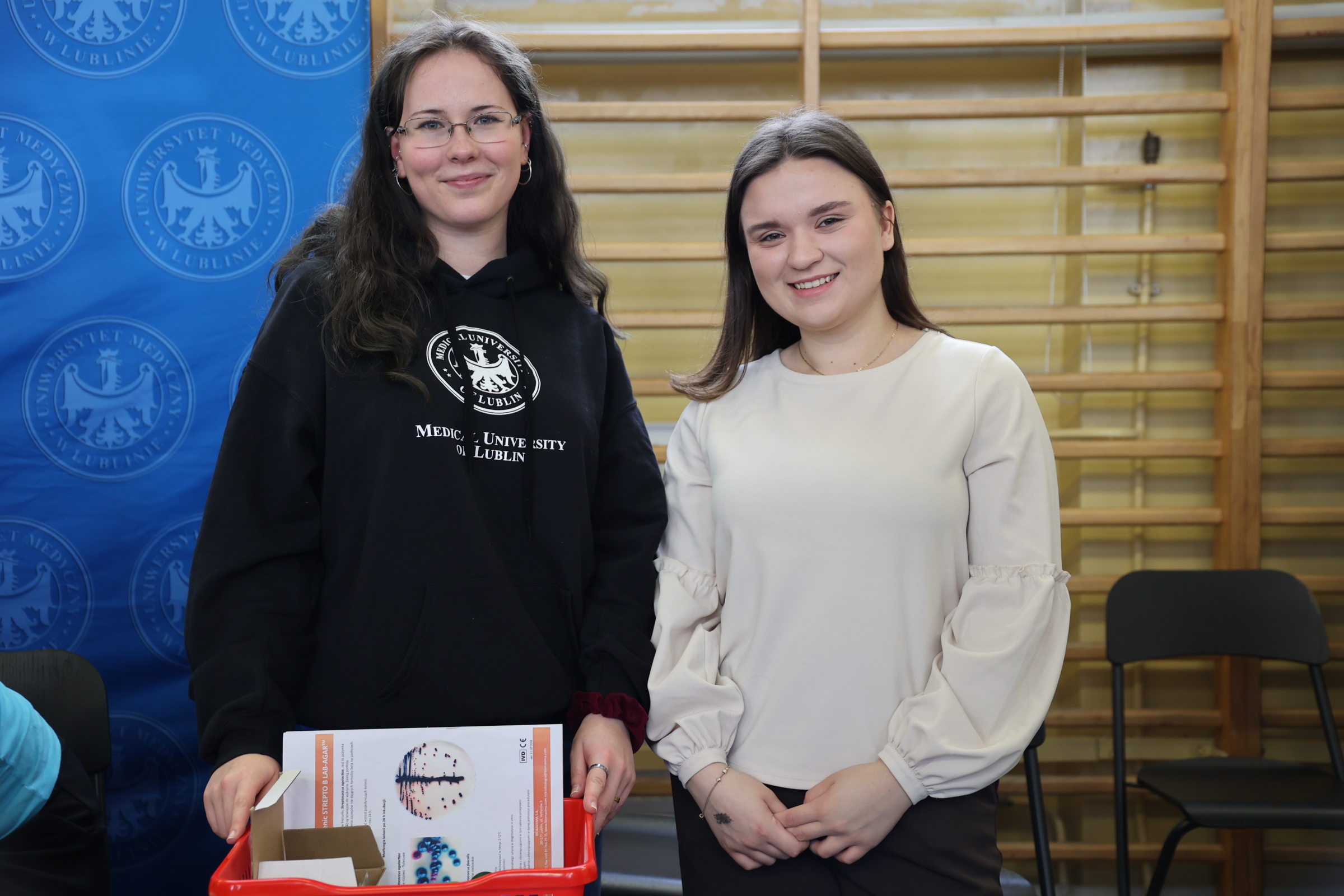 – Dla licealistów przygotowałyśmy krótki pokaz tego, czym na co dzień się zajmujemy. Mamy do zaprezentowania proste testy paskowe, podłoża transportowe do wymazów oraz quiz sprawdzający ich podstawową wiedzę mikrobiologiczną – wyliczały studentki Maria Kubacka (z III roku analityki medycznej) i Klaudia Wrona (III rok farmacji) ze Studenckiego Koła Naukowego mikroGram działającego przy Katedrze i Zakładzie Mikrobiologii Farmaceutycznej Uniwersytetu Medycznego w Lublinie.