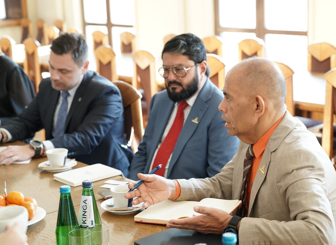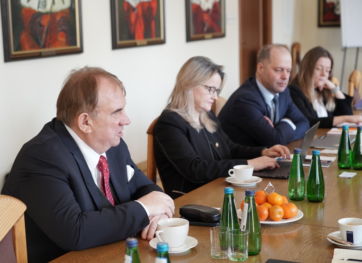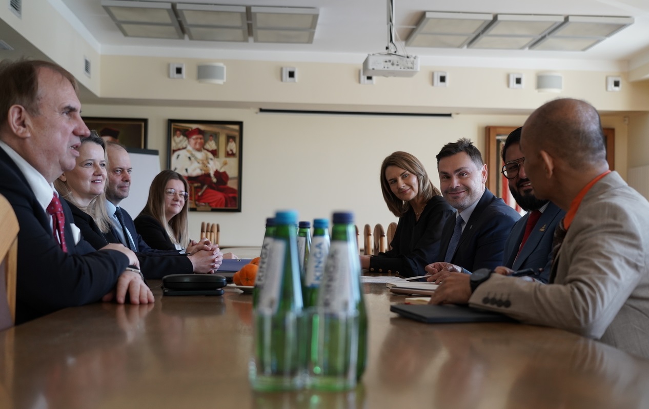 On Monday (February 2), a meeting was held in the Senate Hall of the Medical University of Lublin between representatives of the University and a delegation from Gulf Medical University, represented by the Director of the Legal Department, Mr. Moideen Farhad, and the Director of the Thumbay International Pathway Program, Mr. Vinod Abraham. The Medical University of Lublin was represented by the Rector, Prof. Wojciech Załuska, and the Vice-Rector for Education and Teaching, Prof. Kamil Torres. The discussions focused on key areas of current and future interinstitutional cooperation.