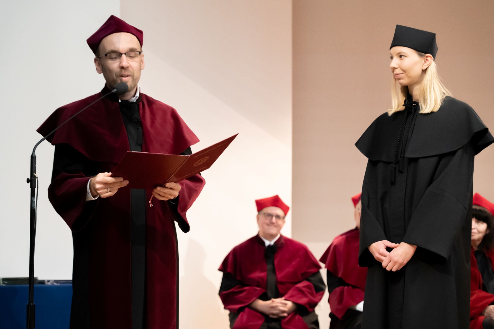 Podczas ceremonii nowo promowani naukowcy złożyli ślubowanie, po czym odebrali dyplomy. Tegoroczna promocja objęła: